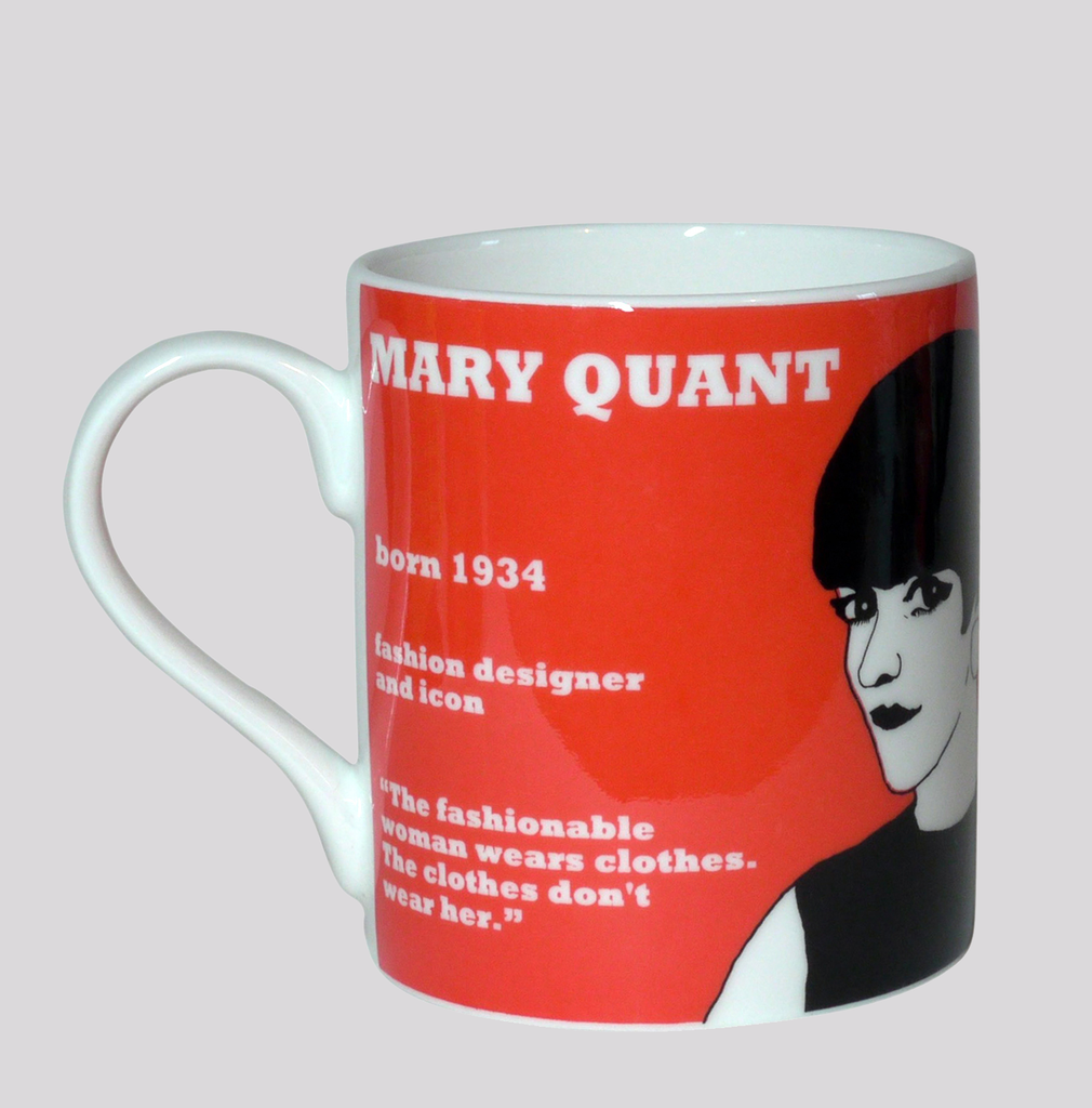 A really good quality bone china mug featuring Sarah Cole's distinctive drawing of Mary Quant, together with dates, facts and quotes to drink in with your cuppa.